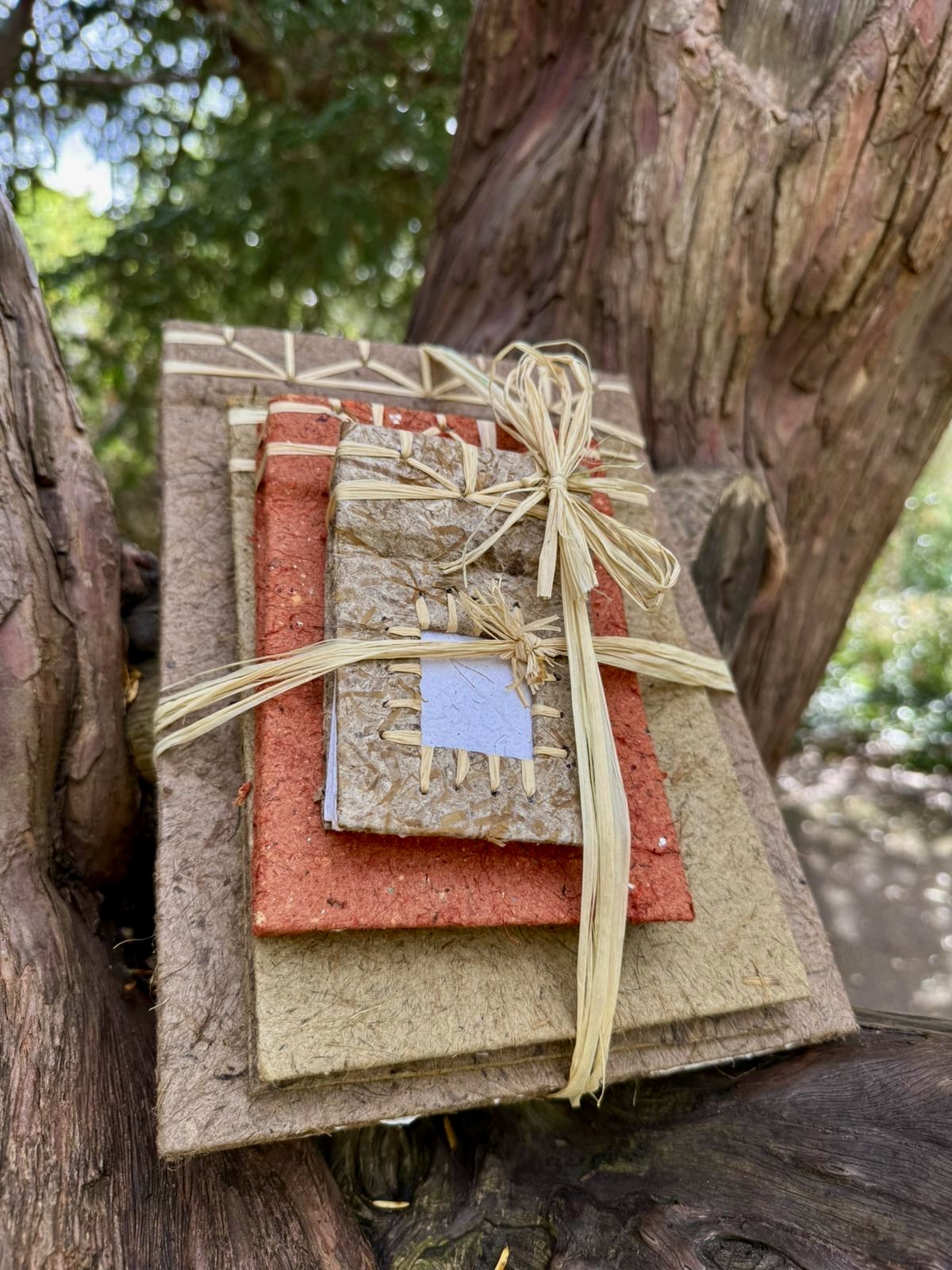 Explore our handmade creations, including storybooks, notebooks, sketchbooks, clipboards, and cards, each one crafted by women artisans who transform waste into wonder, giving new life to discarded paper, offcuts, and sustainable plant fibres, such as banana fibre, pineapple leaf, and elephant grass. Every creation is hand-pulped, naturally dried, and left in its pure state, uncoated, unrefined, and alive with character. Its texture is gently rough, its colour shaped by the fibre, the sun, and the weather. Each piece carries the imprint of time, touch, and care, a reflection of our deep reverence for sustainable artistry. Created for artists, dreamers, writers, and families alike, our collections invite you to slow down, draw, write, take notes, and reconnect with the joy of making together.